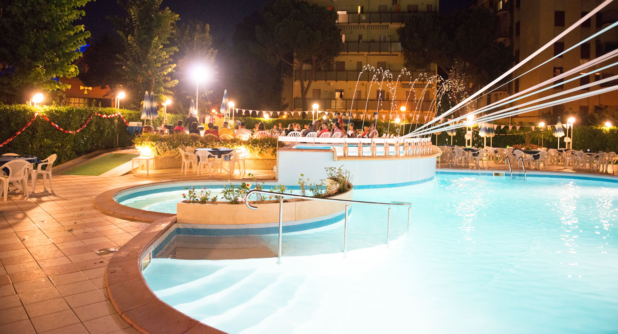 Unser privates Relax – Zentrum „Smeraldino“ verfügt über ein wunderschönes Schwimmbad für Erwachsene und Kinder. Umgeben von schönem Grün befindet es sich nur 50 Meter vom Hotel entfernt. Die Terrasse in der ersten Etage des Pools ist mit Liegestühlen und Outdoor Klimaanlage ausgest attet, um sich ein Sonnenbad in völliger Entspannung zu gönnen.