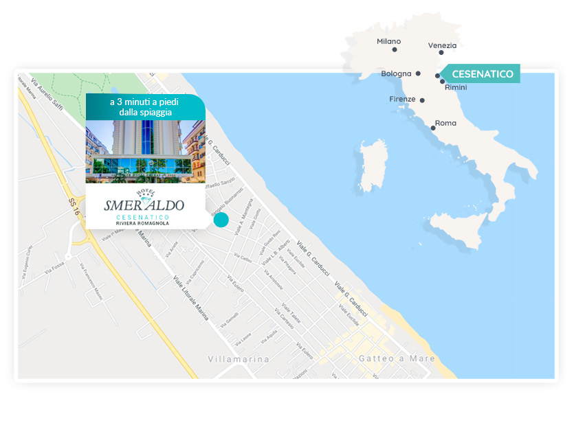 Naviga la mappa e scopri la posizione esatta del nostro albergo 4 stelle a Cesenatico!